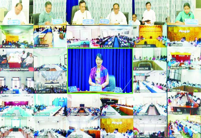 ပညာရေးဝန်ကြီးဌာန ပြည်ထောင်စုဝန်ကြီး ဒေါက်တာချောချောစိန်သည် ယနေ့နံနက်ပိုင်းတွင် အဆင့်မြင့်ပညာဦးစီးဌာနအောက်ရှိ တက္ကသိုလ်များမှ ပါမောက္ခချုပ်များ၊ ဒုတိယပါမောက္ခချုပ်များ၊ ပါမောက္ခများနှင့် အွန်လိုင်းဖြင့် တွေ့ဆုံဆွေးနွေးသည်။