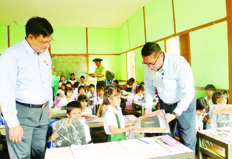 နောင်ချိုမြို့ အမှတ်(၂)အခြေခံပညာအထက်တန်းကျောင်းနှင့် အခြေခံပညာအလယ်တန်းကျောင်းခွဲ (နောင်ချို)၌ ကျောင်းသား ကျောင်းသူများနှင့် ဆရာ ဆရာမများ အေးချမ်းပျော်ရွှင်စွာ ပညာသင်ကြား၊ သင်ယူနေမှုများကို ပညာရေးဝန်ကြီးဌာန ဒုတိယဝန်ကြီး ဦးနေမျိုးလှိုင်နှင့် တာဝန်ရှိသူများက ယနေ့နံနက်ပိုင်းတွင် လှည့်လည်ကြည့်ရှုအားပေးပြီး မူလတန်းကျောင်းသား ကျောင်းသူများကို ကျောပိုးအိတ်၊ ဗလာစာအုပ်၊ ဘောပင်၊ ခဲတံ စသည် တို့ကို ပေးအပ်သည်။