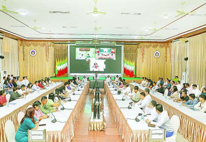 ၂၀၂၆-၂၀၂၇ ဘဏ္ဍာရေးနှစ်၊ အမျိုးသားစီမံကိန်းနှင့် ဒေသန္တရစီမံကိန်းများဆိုင်ရာ ညှိနှိုင်းအစည်းအဝေးကို ယနေ့နံနက်ပိုင်းတွင် နေပြည်တော်ရှိ ဘဏ္ဍာရေးနှင့်အခွန်ဝန်ကြီးဌာန အစည်းအဝေးခန်းမ၌ကျင်းပရာ အမျိုးသားစီမံကိန်းကော်မရှင်အတွင်းရေးမှူး ဘဏ္ဍာရေးနှင့်အခွန်ဝန်ကြီးဌာန ပြည်ထောင်စုဝန်ကြီး ဒေါက်တာကံဇော်၊ ဒုတိယဝန်ကြီးများ၊ အမြဲတမ်းအတွင်းဝန်နှင့် ဌာနဆိုင်ရာတာဝန်ရှိသူများ တက်ရောက်ကြပြီး တိုင်းဒေသကြီး၊ ပြည်နယ်စီးပွားရေးရာဝန်ကြီးများက Video Conference ဖြင့် တက်ရောက်ကြသည်။