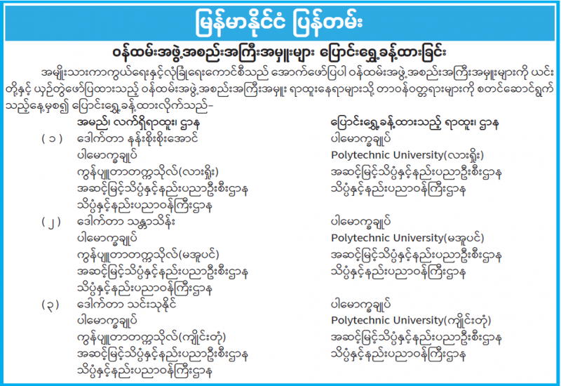 ဝန်ထမ်းအဖွဲ့အစည်းအကြီးအမှူးများ ပြောင်းရွှေ့ခန့်ထားခြင်း
