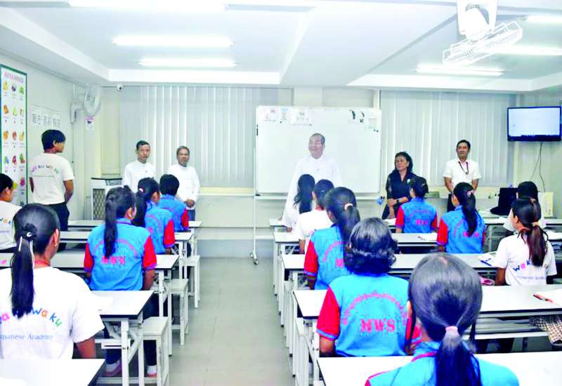 အလုပ်သမားဝန်ကြီးဌာန ဒုတိယဝန်ကြီး ဦးဝင်းရှိန်သည် ယနေ့နံနက်ပိုင်းတွင် ရန်ကုန်တိုင်းဒေသကြီးရှိ အလုပ်သမားရေးရာတာဝန်ရှိသူများနှင့်အတူ သင်္ဃန်းကျွန်းမြို့နယ်ရှိ Waku Waku Japanese Language Academy သို့ သွားရောက်၍ သက်ကြီးရွယ်အိုစောင့်ရှောက်ရေးသင်တန်းနှင့် ဂျပန်ဘာသာစကားသင်တန်းများ ဖွင့်လှစ်ပို့ချနေမှုကို ကြည့်ရှုအားပေးသည်။