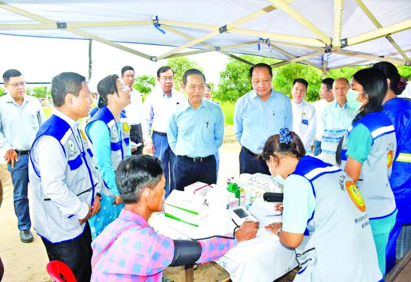 ကျန်းမာရေးဝန်ကြီးဌာန ဒုတိယဝန်ကြီး ပါမောက္ခ ဒေါက်တာ အေးထွန်းသည် ကျန်းမာရေးဝန်ကြီးဌာန ပြည်ထောင်စုဝန်ကြီးရုံးနှင့် ပြည်သူ့ကျန်းမာရေးဦးစီးဌာန ညွှန်ကြားရေးမှူးချုပ် ဒေါက်တာ မြတ်ဝဏ္ဏစိုးနှင့်အတူ ယမန်နေ့ ညနေပိုင်းတွင် ပြည်ထောင်စုနယ်မြေ နေပြည်တော် တပ်ကုန်းမြို့နယ် ရှောက်ကုန်းကျေးရွာသို့ သွားရောက်၍ ရေဝင်ရောက်မှုအခြေအနေကိုကြည့်ရှု၍ ယာယီဆေးခန်းဖွင့်လှစ်ကာ ရေဘေးရှောင်ပြည်သူများအတွက် ကျန်းမာရေးစောင့်ရှောက်နေမှုများကို ကြည့်ရှုပြီး လူနာများကို အားပေးစကားပြောကြား၍ ကျန်းမာရေးဝန်ထမ်းများအား ချီးမြှင့်ငွေများပေးအပ်သည်။