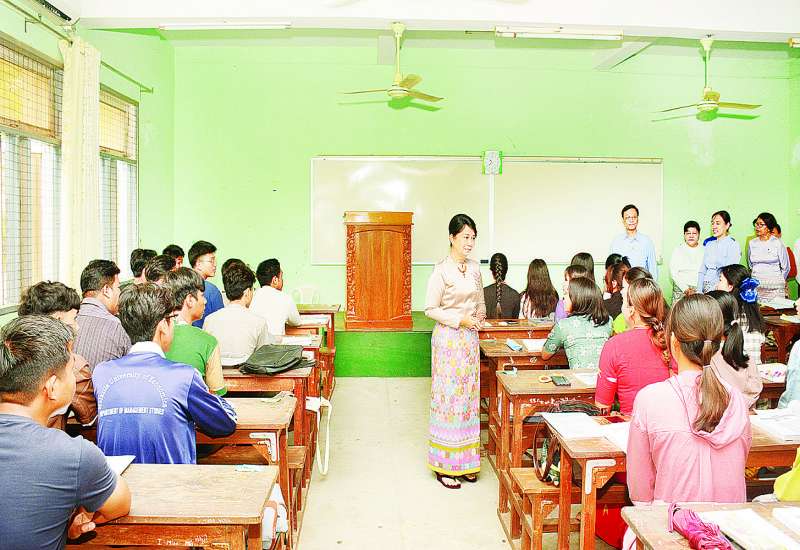 ပညာရေးဝန်ကြီးဌာန ပြည်ထောင်စုဝန်ကြီး ဒေါက်တာ ချောချောစိန်သည် ဒုတိယဝန်ကြီး ဒေါက်တာဇော်မြင့်၊ ညွှန်ကြားရေးမှူးချုပ်များ၊ ဒုတိယညွှန်ကြားရေးမှူးချုပ်များနှင့်အတူ ယနေ့နံနက်ပိုင်းတွင် မိတ္ထီလာစီးပွားရေးတက္ကသိုလ်သို့ ရောက်ရှိကာ ငလျင်ဒဏ်ကြောင့် ထိခိုက်ပျက်စီးမှုများဖြစ်ပေါ်ခဲ့သည့် မိတ္ထီလာစီးပွားရေးတက္ကသိုလ်ဘွဲ့နှင်းသဘင်ခန်းမကို ကြည့်ရှုစစ်ဆေးပြီး တာဝန်ရှိသူများ၏ တင်ပြချက်များနှင့် စပ်လျဉ်း၍ လိုအပ်သည်များကို မှာကြားသည်။