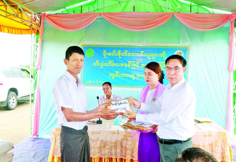ပဲခူးမြို့နယ်အတွင်း နိုင်ငံ့စီးပွားမြှင့်တင်ရေး ရန်ပုံငွေဖြင့်အကျုံးမဝင်သော မိုးစပါးစိုက်တောင်သူများအား သီးနှံပေါ်ပေးစနစ်ဖြင့် ဓာတ်မြေဩဇာ သွင်းအားစုပေးအပ်ပွဲအခမ်းအနားကို ယနေ့နံနက်ပိုင်းက ပဲခူးမြို့နယ် အိုးဘိုကျေးရွာ ယာယီရှင်းလင်းဆောင်၌ကျင်းပရာ သမဝါယမနှင့်ကျေးလက်ဖွံ့ဖြိုးရေးဝန်ကြီးဌာန ပြည်ထောင်စုဝန်ကြီး ဦးလှမိုး၊ ပဲခူးတိုင်း ဒေသကြီးဝန်ကြီးချုပ် ဦးမျိုးဆွေဝင်းနှင့် တာဝန်ရှိသူများ တက်ရောက်ကြသည်။