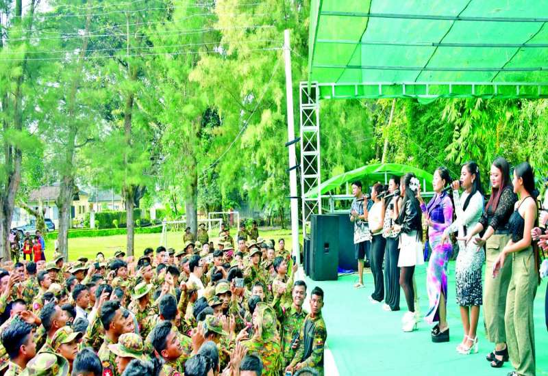 ကယားပြည်နယ် လွိုင်ကော်တပ်နယ်ရှိ တပ်မတော်သားများနှင့် မြန်မာနိုင်ငံရဲတပ်ဖွဲ့ဝင်များအား အနုပညာရှင်များ၏ ဂုဏ်ပြုဖျော်ဖြေတင်ဆက်မှုကို ယနေ့နံနက်ပိုင်းကပြုလုပ်ရာ ပြန်ကြားရေးဝန်ကြီးဌာန ပြည်ထောင်စုဝန်ကြီး ဦးမောင်မောင်အုန်း၊ ပြည်နယ်ဝန်ကြီးချုပ် ဦးဇော်မျိုးတင်တို့ တက်ရောက်ကြည့်ရှုအားပေးပြီး တပ်ဖွဲ့ဝင်များအား ဆုငွေများပေးအပ်ချီးမြှင့်သည်။
