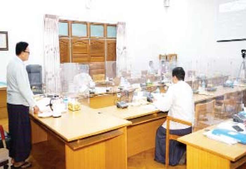 တပ်မတော်မှ နိုင်ငံတော်ကာကွယ်ရေးတာဝန် များကို ထမ်းဆောင်စဉ် ထိခိုက်ဒဏ်ရာရရှိခဲ့သော ဆေးအဆင့်နိမ့် အီးအေ (၁/၂) အရာရှိများအား နယ်ဘက်ဝန်ကြီးဌာန/အဖွဲ့အစည်းများသို့ လွှဲပြောင်းတာဝန်ထမ်းဆောင်နိုင်ရေး ဘုတ်အဖွဲ့အစည်းအဝေးကို ယနေ့နံနက်ပိုင်းတွင် လူမှုဝန်ထမ်း၊ ကယ်ဆယ်ရေးနှင့် ပြန်လည်နေရာချထားရေးဝန်ကြီးဌာန စုပေါင်း အစည်းအဝေး ခန်းမတွင် ကျင်းပရာ ဘုတ်အဖွဲ့ဝင်များ၊ အီးအေ (၁/၂) အရာရှိများ တက်ရောက်ကြသည်။