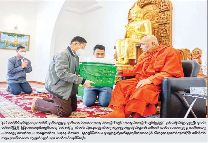 တပ်မတော်(ကြည်း၊ရေ၊လေ) အရာရှိ၊ စစ်သည်၊ အရာထမ်း၊ အမှုထမ်းများနှင့် စေတနာရှင် အလှူရှင်များက ကိုဗစ်-၁၉ ရောဂါ ကြိုတင်ကာကွယ်ရေးလုပ်ငန်းများ ဆောင်ရွက်နေသည့် ကာလအတွင်း ဆွမ်းကိစ္စရပ်များ အဆင်ပြေစေရန်ရည်ရွယ်၍ မြို့နယ်အသီးသီးရှိ ဘုန်းတော်ကြီး ကျောင်းများ၊ သာသနာ့နွယ်ဝင် သီလရှင်ကျောင်းများနှင့် ဘာသာရေးကျောင်းများတွင် ဆွမ်းဆန်တော်၊ ဆီ၊ ဆား၊ ပဲ အမယ်(၄)မျိုးနှင့် လှူဖွယ်ပစ္စည်းများလှူဒါန်းခြင်း၊ နေ့ဆွမ်းများ ဆက်ကပ်လှူဒါန်းခြင်းနှင့် ကျန်းမာရေး စစ်ဆေးပေးခြင်းများကို ဆောင်ရွက်လျက်ရှိသည်။