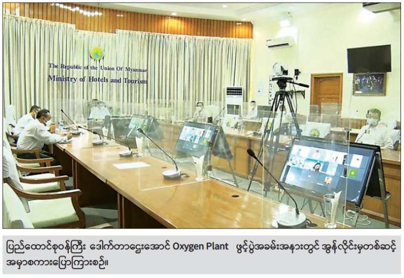 ဟိုတယ်နှင့်ခရီးသွားလာရေးဝန်ကြီးဌာန ပြည်ထောင်စုဝန်ကြီး ဒေါက်တာဌေးအောင်သည် ယနေ့နံနက်ပိုင်းတွင် ရန်ကုန်တိုင်းဒေသကြီး ဗိုလ်တထောင်မြို့နယ် အမှတ်(၃) ကုန်သည်လမ်းနှင့် စန္ဒကူးလမ်းထောင့်၌ တည်ဆောက်ထားသော Oxygen Plant ဖွင့်ပွဲအခမ်းအနားကို အွန်လိုင်းမှတစ်ဆင့် ပါဝင်တက်ရောက်၍ အဖွင့်အမှာစကား ပြောကြားသည်။