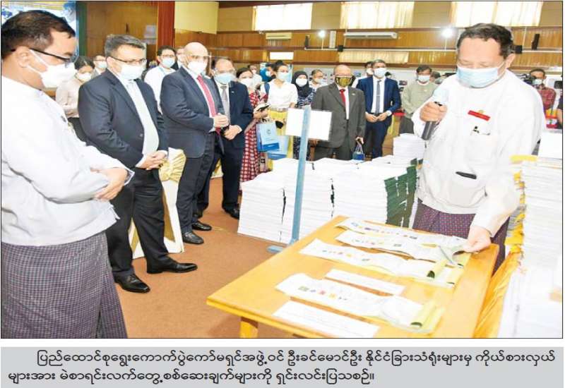 ပြန်ကြားရေးဝန်ကြီးဌာန ပြည်ထောင်စုဝန်ကြီး ဦးမောင်မောင်အုန်းသည် ယနေ့နံနက်ပိုင်းတွင် ရန်ကုန်မြို့ ဗဟန်းမြို့နယ် ငါးထပ်ကြီးဘုရားလမ်းရှိ ဖိုတိုလစ်သို ပုံနှိပ်စက်ရုံသို့ ရောက်ရှိပြီး လုပ်ငန်းဆောင်ရွက်နေမှု အခြေအနေများကို လှည့်လည် ကြည့်ရှုစစ်ဆေးသည်။