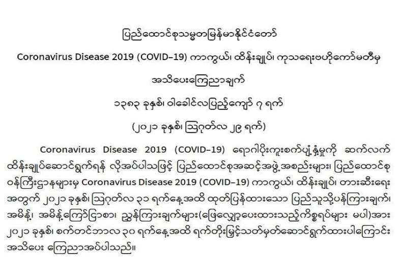 (၂၀၂၁ ခုနှစ်၊ ဩဂုတ်လ (၂၉)ရက်နေ့ ည(၇:၀၀)နာရီအချိန် ထုတ်ပြန်ချက်)