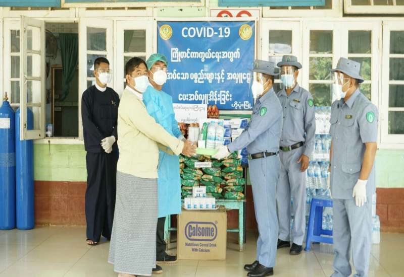 ကျန်းမာရေးဝန်ထမ်းများ၊ ပရဟိတအသင်းအဖွဲ့များ၊ စေတနာ့ဝန်ထမ်း များ စားရေးအဆင်ပြေ စေရေးအတွက် တပ်မတော်နှင့် စေတနာရှင် အလှူရှင်များက စားသောက်ဖွယ်ရာများ၊ ထောက်ပံ့ငွေများနှင့် ရောဂါ ကာကွယ်ရေး အထောက်အကူပြုပစ္စည်းများကိုထောက်ပံ့လှူဒါန်း လျက် ရှိသည်။