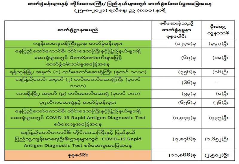 ကျန်းမာရေးဝန်ကြီးဌာနသည် ကိုဗစ်-၁၉ ရောဂါကာကွယ်ထိန်းချုပ်ရေးအတွက် တိုင်း ဒေသကြီး/ပြည်နယ်များတွင် ကိုဗစ်-၁၉ ရောဂါကာကွယ်ဆေးကို ဦးတည်အုပ်စုများ သတ်မှတ်၍ ထိုးနှံပေးလျက်ရှိပါသည်။