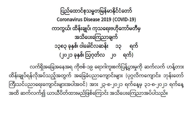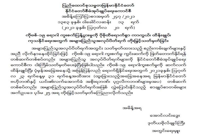 မြန်မာနိုင်ငံတွင် ကိုဗစ်-၁၉ တတိယလှိုင်း ကူးစက်မှုမြင့်မားနေချိန်တွင် နိုင်ငံတော် စီမံအုပ်ချုပ်ရေးကောင်စီအနေဖြင့် ပြည်သူလူထုနှင့်ပူးပေါင်း၍ ရောဂါကာကွယ် ထိန်းချုပ်၊ ကုသရေးလုပ်ငန်းများကို ဘက်ပေါင်းစုံမှ အစွမ်းကုန်ကြိုးပမ်းဆောင်ရွက် လျက်ရှိသည်။ မိဘပြည်သူများအနေဖြင့် ကိုဗစ်-၁၉ ကပ်ရောဂါကို စိုးရိမ်ပူပန်ကြ၍ ရောဂါကာကွယ်၊ ထိန်းချုပ်ရေးလုပ်ငန်းများတွင် တက်ကြွစွာပူးပေါင်းပါဝင်ဆောင်ရွက်လျက်ရှိရာ ယခုအခါ ရောဂါဖြစ်ပွားမှုများ တဖြည်းဖြည်းလျော့ကျလာသည်။