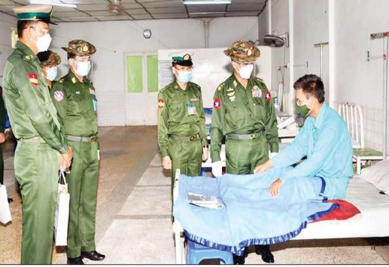 ကရင်ပြည်နယ်၊ ဘားအံမြို့ရှိ နယ်မြေခံတပ်မတော်ဆေးရုံ၌ တက်ရောက် ဆေးကုသမှုခံယူလျက်ရှိသော အရာရှိ၊ စစ်သည်၊ မိသားစုများနှင့် ဒေသခံ ပြည်သူများအား ယနေ့မွန်းလွဲပိုင်းတွင် ကာကွယ်ရေးဦးစီးချုပ်ရုံး(ကြည်း)မှ ဒုတိယဗိုလ်ချုပ်ကြီး အောင်စိုး၊ အရှေ့တောင်တိုင်းစစ်ဌာနချုပ်တိုင်းမှူး ဗိုလ်ချုပ် ကိုကိုမောင်နှင့် အဖွဲ့ဝင်များက သွားရောက်ကြည့်ရှု၍ တစ်ဦးချင်း၏ ရောဂါဖြစ်ပွားမှု၊ ဆေးဝါးကုသပေးထားမှုနှင့် ကျန်းမာရေးတိုးတက်ကောင်းမွန်မှု အခြေအနေများကို မေးမြန်းအားပေး စကားပြောကြားပြီး စားသောက်ဖွယ်ရာများ ပေးအပ်သည်။ ထို့နောက် ဆေးရုံအတွင်းလိုက်လံကြည့်ရှု၍ လိုအပ်သည် များ ညှိနှိုင်းဆောင်ရွက်ပေးသည်။