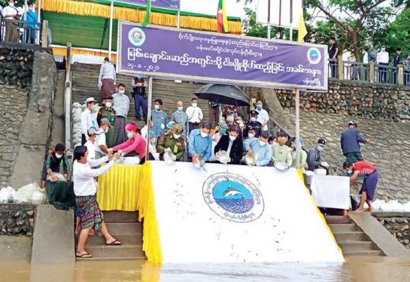 ကချင်ပြည်နယ် ဗန်းမော်ခရိုင်ငါးလုပ်ငန်းဦးစီးဌာနမှ ရေရှည်စဉ်ဆက်မပြတ် ငါးလုပ်ငန်းများ ပိုမိုဖွံ့ဖြိုး တိုးတက်လာစေရန်၊ ငါးရိက္ခာဖူလုံစေရန် ငါးသယံဇာတများ တိုးပွားလာစေရန်နှင့် ကျေးလက်နေပြည်သူများ ငါးများကို ပိုမိုဖမ်းယူစားသုံးနိုင်စေရန် ရည်ရွယ်၍ ဧရာဝတီမြစ်အတွင်းသို့ ငါးမျိုးစိုက်ထည့်ခြင်းကို ယနေ့နံနက် ၈ နာရီတွင် ဗန်းမော်မြို့ ကမ်းသာဦးဆိပ်ကမ်းတွင် ကျင်းပခဲ့ သည်။