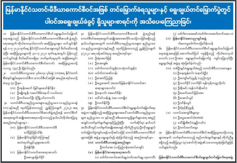 ပြန်ကြားရေးဝန်ကြီးဌာန ပြည်ထောင်စုဝန်ကြီး ဦးမောင်မောင်အုန်းသည် ရန်ကုန်မြို့ရှိ ဂီတအဖွဲ့ အစည်းများမှ တာဝန်ရှိပုဂ္ဂိုလ်များနှင့် ဂီတအနုပညာ ရှင်များအား ယနေ့မွန်းလွဲပိုင်းတွင် ဗီဒီယိုကွန်ဖရင့် စနစ်ဖြင့် တွေ့ဆုံသည်။ တက်ရောက် တွေ့ဆုံပွဲသို့ ဒုတိယဝန်ကြီး ဦးရဲတင့်၊ အမြဲတမ်း အတွင်းဝန် ဦးမျိုးမြင့်မောင်နှင့် ဌာနဆိုင်ရာ အကြီးအကဲများ၊ မြန်မာနိုင်ငံ ဂီတအစည်းအရုံး (ဗဟို) တွဲဖက်အတွင်းရေးမှူး (၁) ဦးသက်ဆွေ၊ အတွင်းရေးမှူး (၃) ဦးမင်းဇော်၊ ဘဏ္ဍာရေးမှူး ဒေါ်သီသီမာ၊ မြန်မာနိုင်ငံ တေးသီချင်း မူပိုင်ရှင်များ အသင်းဥက္ကဋ္ဌ ဦးမြင့်မိုးအောင်၊ မြန်မာ့ဂီတ အကျိုး စီးပွား ကာကွယ်စောင့်ရှောက်ရေးအဖွဲ့ ဥက္ကဋ္ဌ စန္ဒရား ဦးသိန်းမြင့်သန်း၊ အတွင်းရေးမှူး ဦးအောင်မင်းနိုင်၊ ဘဏ္ဍာရေးမှူး (အသံပညာရှင်) အကယ်ဒမီ ဦးကြည် မင်းသိန်း၊ တေးရေး ဦးမောင်မောင်လတ်၊ ဦးမင်းယု၊ တေးဆို ဒေါ်ထား၊ ဦးသန်းမြတ်စိုး၊ တက္ကသိုလ်လဲ့လဲ့၊ ဟန်နွေငြိမ်း (ခ) ဂျင်းနီ၊ မြန်မာ့အသံနှင့် ရုပ်မြင် သံကြား အကြံပေး ဦးမြင့်အောင်နှင့် တာဝန်ရှိသူများ တက်ရောက်ကြသည်။