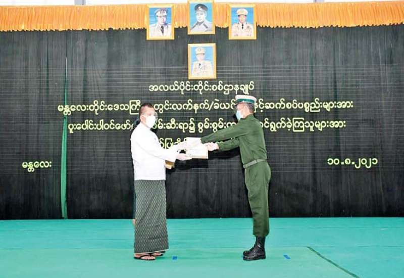 မန္တလေးတိုင်းဒေသကြီးအတွင်း လက်နက်/ခဲယမ်းများနှင့် ဆက်စပ်ပစ္စည်းများကို ပူးပေါင်းပါဝင် ဖော်ထုတ်ဖမ်းဆီးရာ၌ စွမ်းစွမ်းတမံဆောင်ရွက်ခဲ့ကြသူများအား ဂုဏ်ပြုချီးမြှင့်ခြင်းကို ယနေ့ နံနက်ပိုင်းတွင် အလယ်ပိုင်းတိုင်းစစ်ဌာနချုပ်၊ အားကစားခန်းမ၌ ပြုလုပ်ရာ မန္တလေးတိုင်း ဒေသကြီးဝန်ကြီးချုပ် ဦးမောင်ကို၊ တိုင်းမှူး ဗိုလ်ချုပ် ကိုကိုဦး၊ တိုင်းဒေသကြီးအစိုးရအဖွဲ့ဝင် ဝန်ကြီးများနှင့် ဌာနဆိုင်ရာတာဝန်ရှိသူများ တက်ရောက်ကြသည်။