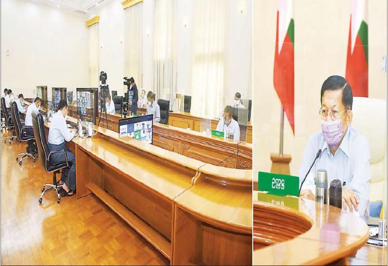 ကိုဗစ် - ၁၉ ရောဂါ ကာကွယ်၊ ထိန်းချုပ်၊ ကုသရေး ဆိုင်ရာ ဆဋ္ဌမအကြိမ် ညှိနှိုင်းအစည်းအဝေးကို ယနေ့နံနက်ပိုင်းတွင် နေပြည်တော်ရှိ ဘုရင့်နောင်ရိပ်သာ အစည်းအဝေးခန်းမ၌ ကျင်းပပြုလုပ်ရာ နိုင်ငံတော်စီမံအုပ်ချုပ်ရေး ကောင်စီဥက္ကဋ္ဌ၊ ပြည်ထောင်စုသမ္မတမြန်မာနိုင်ငံတော် အိမ်စောင့်အစိုးရ၊ နိုင်ငံတော်ဝန်ကြီးချုပ် ဗိုလ်ချုပ်မှူးကြီး မင်းအောင်လှိုင် တက်ရောက် အမှာစကားပြောကြားသည်။