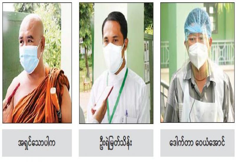 နေပြည်တော်ကောင်စီနယ်မြေ မြို့နယ် ၈ မြို့နယ်ရှိ အသက် ၆၅ နှစ်နှင့်အထက် ရှိသူများ၊ ကိုဗစ်-၁၉ ကာကွယ်၊ ထိန်းချုပ်၊ ကုသရေးလုပ်ငန်းများတွင် ရှေ့တန်းမှ တာဝန်ထမ်းဆောင်နေကြသည့် ကျန်းမာရေးဝန်ထမ်းများနှင့် ပုဂ္ဂလိကကျန်းမာရေး ဝန်ထမ်းများ၊ သာသနာ့ဝန်ထမ်းများ၊ စေတနာ့ဝန်ထမ်းများ၊ ကာကွယ်ဆေးမထိုးရသေးသော နိုင်ငံ့ဝန်ထမ်းများ၊ ပုဂ္ဂလိက ဘဏ်ဝန်ထမ်းများ၊ ပုဂ္ဂလိကစက်ရုံ/ အလုပ်ရုံဝန်ထမ်းများ၊ ဟိုတယ်/မိုတယ်/ တည်းခိုခန်းများမှ ဝန်ထမ်းများ၊ စူပါမားကတ်များ ဈေးများမှ ဝန်ထမ်းများအား ကိုဗစ်-၁၉ ကာကွယ်ဆေးများကို ထိုးနှံပေးလျက်ရှိရာ ယင်းသို့ ကာကွယ်ဆေးထိုးနှံခြင်း လုပ်ငန်း များ အဆင်ပြေချောမွေ့စွာ ဆောင်ရွက်နိုင်ရန် ဆေးထိုးနှံမှုလုပ်ငန်းစဉ်များကို ကြီးကြပ်ပေးနေသည့် မြို့နယ်အုပ်ချုပ်ရေးမှူးများ နှင့် ဆေးလာရောက်ထိုးနှံကြသူများ၏ ပြောကြားချက်များကို တင်ပြလိုက်ပါသည်။