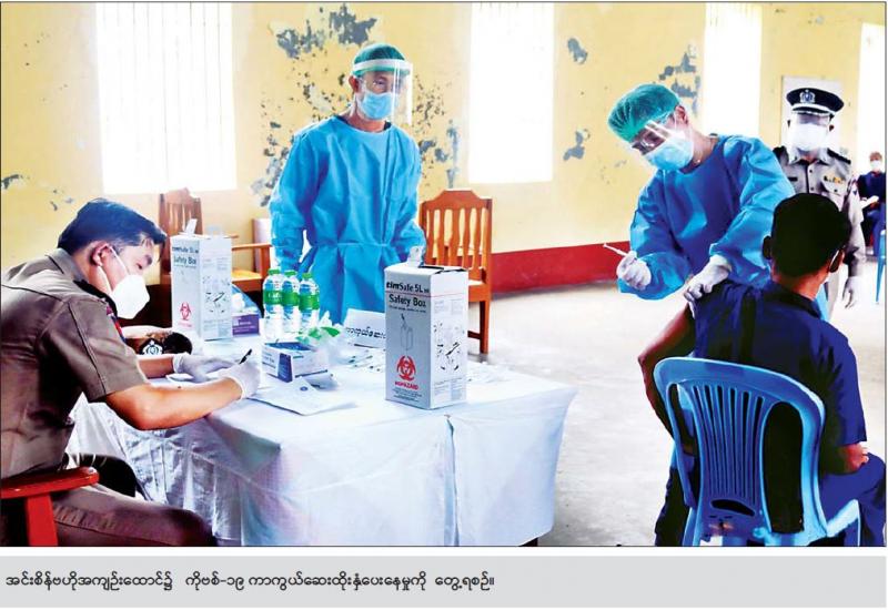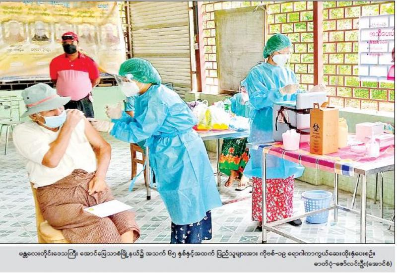 နိုင်ငံ့ဝန်ထမ်းများနှင့် ဝန်ထမ်းမိသားစုများ၊ အသက် ၆၅ နှစ်နှင့် အထက်ရှိသူများအား ဇူလိုင် ၂၈ ရက်က ကိုဗစ်-၁၉ ရောဂါ ကာကွယ်ဆေး ထိုးနှံပေးလျက်ရှိကြောင်း သိရသည်။ ကာကွယ်ဆေးထိုးခြင်းမပြုမီ လက်သန့်ဆေးရည်ဖြင့် လက်ဆေးစေခြင်း၊ ကိုယ်အပူချိန် တိုင်းတာပေးခြင်း၊ သွေးပေါင်ချိန်တိုင်းတာပေးခြင်း၊ဆေးမထိုးရအုပ်စု မှန်/မမှန် စိစစ်ပြီး ကာကွယ်ဆေး ထိုးပြီးလျှင် ဆေးနှင့် ဓာတ်မတည့်ခြင်းနှင့် ဘေးထွက် ဆိုးကျိုးလက္ခဏာများ တစ်စုံတစ်ရာ ဖြစ်ပေါ်လာပါက ချက်ချင်းအရေးပေါ် တုံ့ပြန်နိုင်ရန်အတွက် မိနစ် ၃၀ အကြာ စောင့်ကြပ်ကြည့်ရှုပေးရန် စီစဉ်ဆောင်ရွက် ပေးထားကြောင်း သိရသည်။