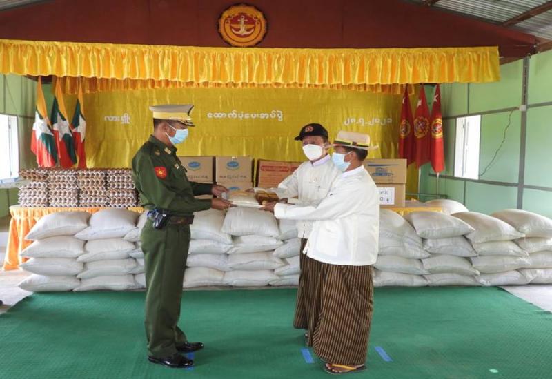 ကိုဗစ်- ၁၉ ရောဂါ ကာကွယ်၊ ထိန်းချုပ်၊ ကုသရေးလုပ်ငန်းများကို အရှိန် အဟုန်မြှင့် ဆောင်ရွက် လျက်ရှိရာ သွားလာမှုကန့်သတ်ချက်များကြောင့် စစ်မှုထမ်း ဟောင်းအဖွဲ့ဝင်များ၊ မြန်မာနိုင်ငံ ရဲတပ်ဖွဲ့ဝင်များ၊ ပြည်သူ့စစ်(ဌာနေ) တပ်ဖွဲ့ ဝင်များ၊ ကျန်းမာရေးဝန်ထမ်းများနှင့် ဒေသခံ ပြည်သူများ စားရေးအဆင်ပြေ စေရေးအတွက် စေတနာရှင်အလှူရှင်များ၊ သက်ဆိုင်ရာ တိုင်းစစ် ဌာနချုပ်များက စားသောက်ဖွယ်ရာ များ ထောက်ပံ့ပေးအပ်လျက်ရှိသည်။