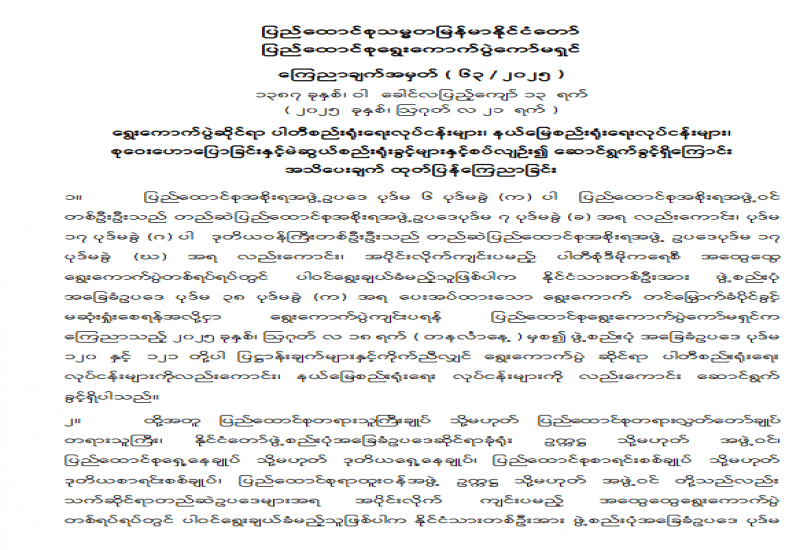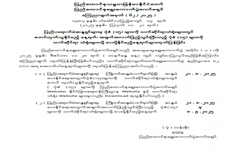 ရန်ကုန်မြို့နှင့် မန္တလေးမြို့အတွက် ရည်ညွှန်းလက်ကားဈေးနှုန်းများနှင့် ပြည်ထောင်စုနယ်မြေ နေပြည်တော်၊ တိုင်းဒေသကြီး/ပြည်နယ် မြို့တော်များအတွက် ရည်ညွှန်းလက်လီဈေးနှုန်းများ