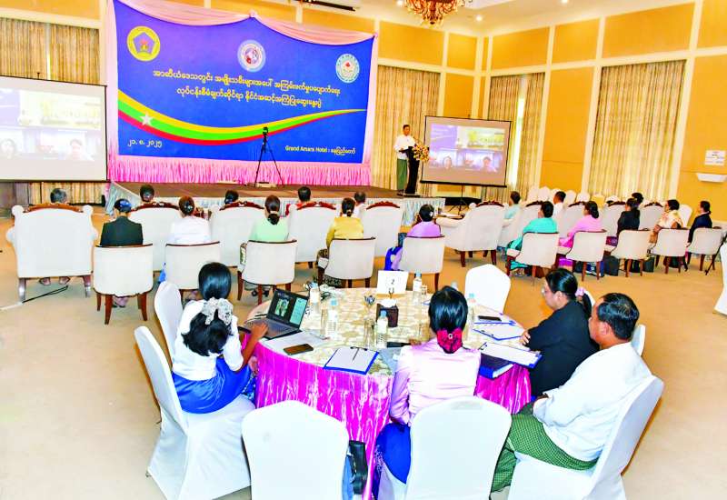 အာဆီယံဒေသတွင်း အမျိုးသမီးများအပေါ် အကြမ်းဖက်မှုပပျောက်ရေးလုပ်ငန်းစီမံချက်ဆိုင်ရာ နိုင်ငံအဆင့်အကြံပြုဆွေးနွေးပွဲကို ယနေ့နံနက်ပိုင်းတွင် Grand Amera Hotel နေပြည်တော်၌ကျင်းပရာ မြန်မာနိုင်ငံလုံးဆိုင်ရာ အမျိုးသမီးကော်မတီဥက္ကဋ္ဌ လူမှုဝန်ထမ်း၊ ကယ်ဆယ်ရေးနှင့် ပြန်လည်နေရာချထားရေးဝန်ကြီးဌာန ပြည်ထောင်စုဝန်ကြီး ဒေါက်တာစိုးဝင်း၊ အမျိုးသမီးအဖွဲ့အစည်းများမှ ဥက္ကဋ္ဌများ၊ အမြဲတမ်းအတွင်းဝန်၊ ညွှန်ကြားရေးမှူးချုပ်များ၊ အမျိုးသမီးများအပေါ် အကြမ်းဖက်မှုဆိုင်ရာ လုပ်ငန်းကော်မတီမှ ကိုယ်စားလှယ်များနှင့် အစိုးရမဟုတ်သော အဖွဲ့အစည်းများမှ ကိုယ်စားလှယ်များက လူကိုယ်တိုင်တက်ရောက်ပြီး အာဆီယံအတွင်းရေးမှူးချုပ်ရုံးမှ ကိုယ်စားလှယ်များက အွန်လိုင်းဖြင့်တက်ရောက်သည်။