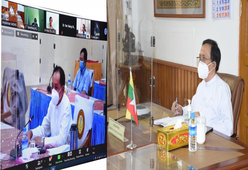 ကျန်းမာရေးနှင့်အားကစားဝန်ကြီးဌာန၊ ကိုဗစ်-၁၉ ရောဂါကာကွယ်၊ ထိန်းချုပ်၊ ကုသ ရေး လုပ်ငန်းအရှိန်အဟုန်မြှင့်တင်ရေး ညှိနှိုင်းအစည်းအဝေးကို ဇူလိုင် ၁၇ ရက် က ရုံးအမှတ် (၄)၊ ကျန်းမာရေးနှင့်အားကစားဝန်ကြီးဌာန၊ နေပြည်တော်၌ Video Conference စနစ်ဖြင့် ကျင်းပရာ ပြည်ထောင်စုဝန်ကြီး ဒေါက်တာသက်ခိုင်ဝင်း တက်ရောက်သည်။