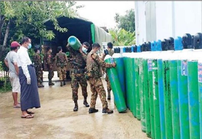 ကိုဗစ်-၁၉ ရောဂါဓာတ်ခွဲအတည်ပြု ပိုးတွေ့လူနာများနှင့် သီးသန့်စောင့် ကြည့်ရမည့်သူများကို ကုသရေးလုပ်ငန်းများ ဆောင်ရွက်ရာတွင် အောက်ဆီဂျင် လိုအပ်ချက်များကို တစ်ဖက်တစ်လမ်းမှ အထောက်အကူပြုစေရန်အတွက် တပ်မတော် နှင့် အလှူရှင်များက အောက်ဆီဂျင်အိုးများကို တိုင်းဒေသကြီးနှင့် ပြည်နယ်အသီးသီးရှိ ပြည်သူ့ဆေးရုံများ၊ တပ်မတော်ဆေးရုံများ၊ ကျန်းမာရေးဌာနများနှင့် ကိုဗစ်စင်တာ များသို့ ပေးပို့လှူဒါန်းလျက်ရှိသည်။
