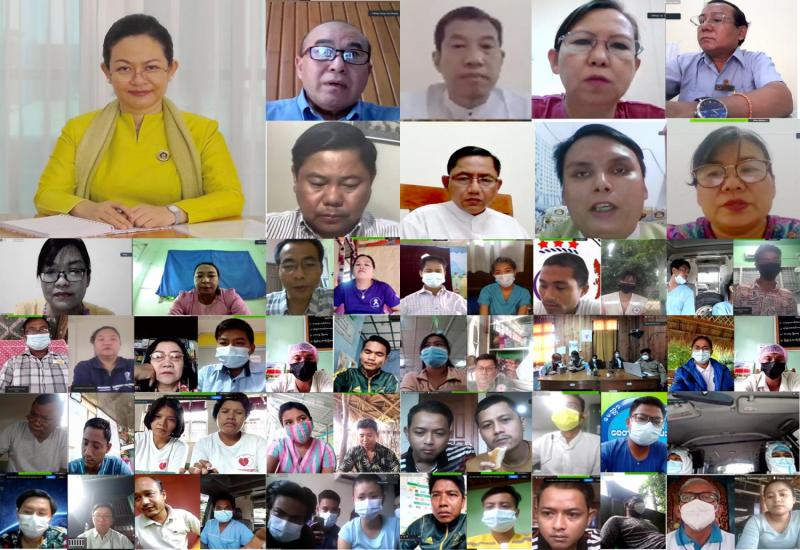နိုင်ငံတစ်ဝန်းလုံးအတိုင်းအတာဖြင့် နေပြည်တော်ကောင်စီအပါအဝင် တိုင်းဒေသကြီး၊ ပြည်နယ်အသီးသီးမှ စေတနာ့ဝန်ထမ်းများအတွက် ကိုဗစ်-၁၉ ရောဂါ ကာကွယ်၊ထိန်းချုပ် တုံ့ပြန်ရေး လုပ်ငန်းစဉ်များနှင့်ပတ်သက်ပြီး လုပ်ငန်းဆိုင်ရာကျွမ်းကျင်မှုသင်တန်းကို အွန်လိုင်း စနစ်ဖြင့် ယနေ့နံနက် ၉ နာရီခွဲတွင် ကျင်းပသည်။
