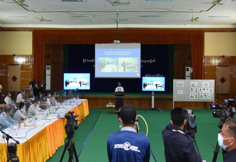 COVID-19 ရောဂါ ကာကွယ်၊ ထိန်းချုပ်၊ ကုသရေးဆိုင်ရာ ဒုတိယအကြိမ် ညှိနှိုင်းအစည်းအဝေးကို ယနေ့မွန်းလွဲပိုင်းတွင် နေပြည်တော်ရှိ ကာကွယ်ရေးဦးစီး ချုပ်ရုံး(ကြည်း)၊ အစည်းအဝေးခန်းမ၌ ကျင်းပပြုလုပ်ရာ နိုင်ငံတော်စီမံအုပ်ချုပ်ရေး ကောင်စီဥက္ကဋ္ဌ တပ်မတော်ကာကွယ်ရေးဦးစီးချုပ် ဗိုလ်ချုပ်မှူးကြီး မင်းအောင်လှိုင် တက်ရောက် အမှာစကားပြောကြားသည်။