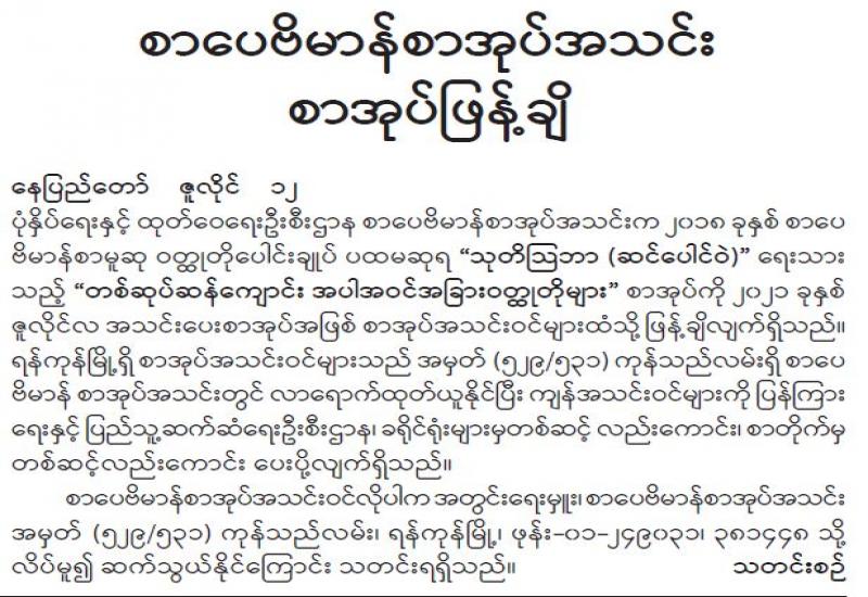 ပြန်ကြားရေးဝန်ကြီးဌာန၏ လမ်းညွှန်မှုဖြင့် ပုံနှိပ်ရေးနှင့်ထုတ်ဝေရေး ဦးစီးဌာန၊ စာပေဗိမာန်က ဒေါက်တာမောင်မောင်ရေးသားသည့် "သားမောင်စစ်သည်သို့” စာအုပ်ကို ထုတ်ဝေဖြန့်ချိလိုက်ပြီ ဖြစ်သည်။ ယင်းစာအုပ်မှာ စတုတ္ထအကြိမ်ထုတ်ဝေခြင်း ဖြစ်သည်။ ကိုယ်တိုင်လည်း တပ်မတော်သားဖြစ်ပြီး တပ်မတော်သားစစ်သည်တို့၏ ဖခင်ဖြစ်သူက တပ်မတော်သည် နိုင်ငံတစ်နိုင်ငံအတွက် အရေးပါသည့် အခန်းကဏ္ဍဖြစ်ကြောင်း ရေးသားထားသည့်စာအုပ်ဖြစ်သည်။