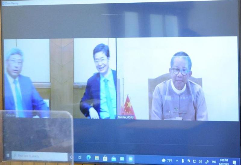 စိုက်ပျိုးရေး၊မွေးမြူရေးနှင့်ဆည်မြောင်းဝန်ကြီးဌာနပြည်ထောင်စုဝန်ကြီး ဦးတင်ထွဋ်ဦး သည် ယနေ့ညနေပိုင်းတွင် မြန်မာနိုင်ငံဆိုင်ရာ တရုတ်ပြည်သူ့သမ္မတနိုင်ငံ သံအမတ်ကြီး မစ္စတာချန်းဟိုင်ကို Online Virtual ဖြင့် တွေ့ဆုံ၍ နှစ်နိုင်ငံလယ်ယာကဏ္ဍကုန်သွယ်မှု တိုးမြှင့် ရေးဆိုင်ရာများကို ရင်းနှီးပွင့်လင်းစွာဆွေးနွေးကြသည်။