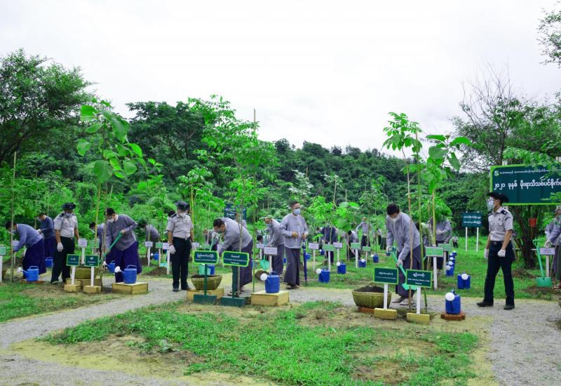 သယံဇာတနှင့် သဘာဝပတ်ဝန်းကျင်ထိန်းသိမ်းရေး ဝန်ကြီးဌာန၊ ၂၀၂၁ ခုနှစ်၊ မိုးရာသီ သစ်ပင်စိုက်ပျိုးပွဲကို ယနေ့ နံနက် ၇ နာရီခွဲက နေပြည်တော်ကောင်စီနယ်မြေ၊ ဥတ္တရခရိုင်၊ ဥတ္တရသီရိမြို့နယ်၊ ဖိုးဇောင်တောင်ကြိုးဝိုင်း(၃)၌ ကိုဗစ်-၁၉ ကာကွယ်၊ ထိန်းချုပ်၊ ကုသရေးဗဟိုကော်မတီ၏ လမ်းညွှန်ချက်၊ စည်းမျဉ်းစည်းကမ်းများနှင့်အညီ ကျင်းပသည်။