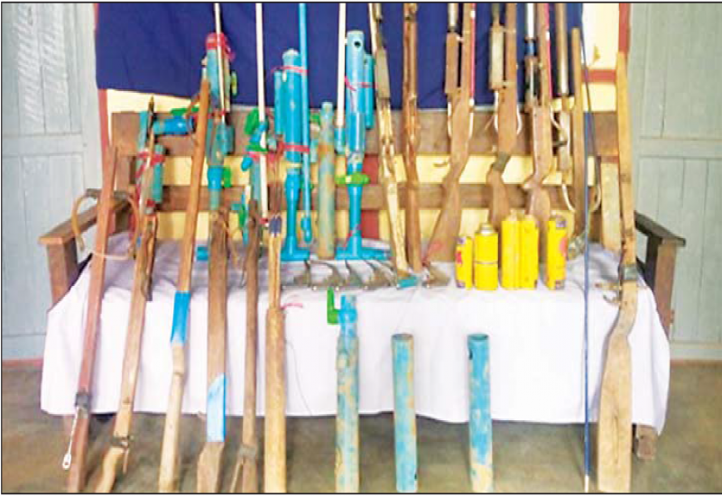 တိုင်းဒေသကြီး/ ပြည်နယ်များရှိမြို့နယ်အချို့၌ အေးချမ်းစွာနေထိုင်လိုသည့်ပြည်သူလူထုများ က ၎င်းတို့၏ သဘောဆန္ဒအလျောက် လက်လုပ်သေနတ်များနှင့် ဆက်စပ်ပစ္စည်းများအား အုပ်ချုပ်ရေး တာဝန်ရှိသူများမှတစ်ဆင့် လုံခြုံရေးတပ်ဖွဲ့ဝင်များထံ လာရောက်အပ်နှံလျက်ရှိရာ ယနေ့တွင် ဧရာဝတီတိုင်းဒေသကြီး၊ ကျုံပျော်မြို့နယ်နှင့် ချင်းပြည်နယ်၊ မတူပီမြို့နယ်တို့မှ တူမီးသေနတ် ၁၀ လက်၊ လက်လုပ်သေနတ် ၁၆ လက်၊ ဒူးလေး ၅ လက်နှင့် ဆက်စပ်ပစ္စည်းများအား ကျေးရွာအုပ်ချုပ်ရေး တာဝန်ရှိသူများမှ တစ်ဆင့် လုံခြုံရေးတပ်ဖွဲ့ဝင်များထံ လာရောက်အပ်နှံခဲ့ကြောင်း သိရသည်။