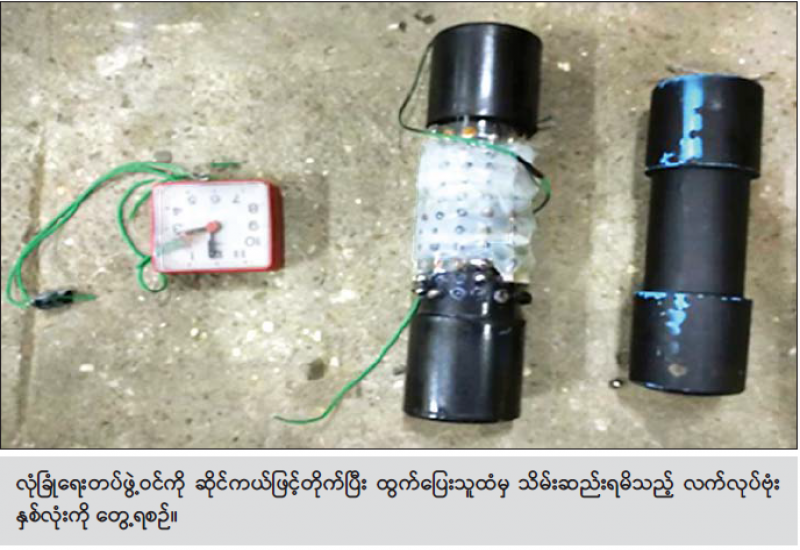 ရန်ကုန်တိုင်းဒေသကြီး၊ ထန်းတစ်ပင်မြို့နယ်၌ ယာဉ်စစ်ဆောင်ရွက်နေသော လုံခြုံရေးတပ်ဖွဲ့ဝင် တစ်ဦးအား ဆိုင်ကယ်ဖြင့် တိုက်ပြေးသူ အမျိုးသားတစ်ဦးအား ခြောက်လှန့်ပစ်ခတ်ဖမ်းဆီးခဲ့ပြီး ၎င်းထံမှ လက်လုပ်ဗုံး ၂ လုံး သိမ်းဆည်းရရှိခဲ့ကြောင်း သိရသည်။