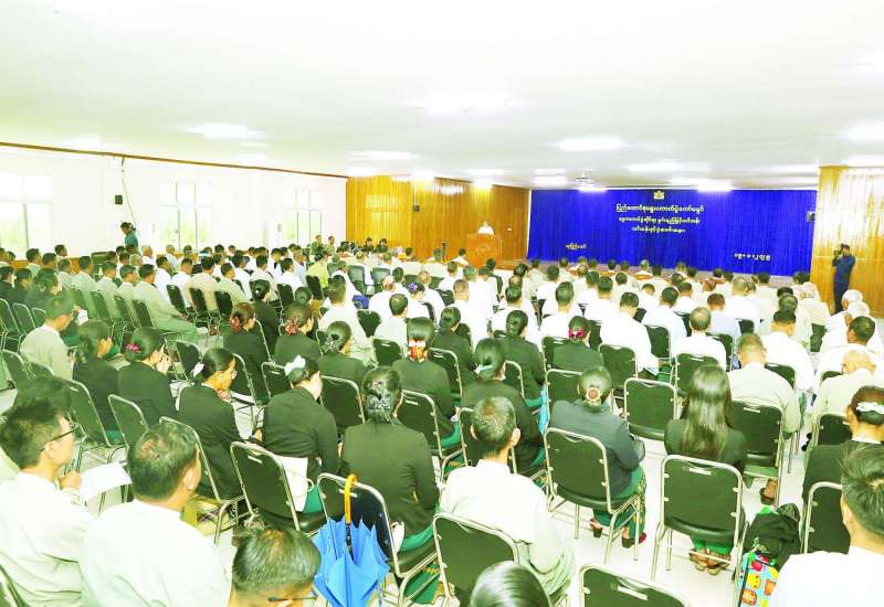 ပါတီစုံဒီမိုကရေစီအထွေထွေရွေးကောက်ပွဲ အောင်မြင်စွာကျင်းပနိုင်ရန် ရွေးကောက်ပွဲကော်မရှင် အဖွဲ့ခွဲအဆင့်ဆင့်ရှိဥက္ကဋ္ဌ၊ အဖွဲ့ဝင်များနှင့် ဝန်ထမ်းများအတွက် ရွေးကောက်ပွဲဆိုင်ရာ စွမ်းရည်မြှင့်သင်တန်းဖွင့်ပွဲ အခမ်းအနားကို ယနေ့နံနက် ၈ နာရီခွဲက နေပြည်တော်ရှိ ပြည်ထောင်စုရွေးကောက်ပွဲကော်မရှင်ရုံး၌ကျင်းပရာ ပြည်ထောင်စုရွေးကောက်ပွဲကော်မရှင်ဥက္ကဋ္ဌ ဦးသန်းစိုး၊ အဖွဲ့ဝင်များ၊ တိုင်းဒေသကြီး၊ ပြည်နယ်၊ ပြည်ထောင်စုနယ်မြေနှင့် ခရိုင်ရွေးကောက်ပွဲကော်မရှင် အဖွဲ့ခွဲအဆင့်ဆင့်မှ ဥက္ကဋ္ဌနှင့်အဖွဲ့ဝင်များ၊ တာဝန်ရှိသူများ တက်ရောက်ကြသည်။