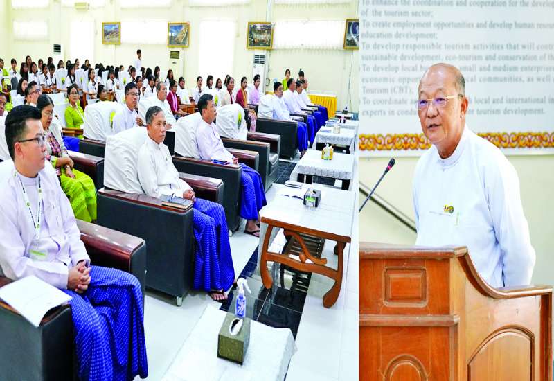 ဟိုတယ်နှင့်ခရီးသွားလာရေးဝန်ကြီးဌာန ပြည်ထောင်စုဝန်ကြီး Jeng Phang နော်တောင်သည် ယနေ့မွန်းလွဲပိုင်းက နေပြည်တော်သို့ လေ့လာရေးခရီးရောက်ရှိနေသည့် မန္တလာတက္ကသိုလ်မှ ခရီးသွားလုပ်ငန်းနှင့် ဧည့်ဝန်ဆောင်မှုဆိုင်ရာစီမံခန့်ခွဲမှုဘာသာရပ် အထူးပြုပထမနှစ်ကျောင်းသား ကျောင်းသူများအား ဝန်ကြီးဌာန ကျောက်စိမ်းခန်းမ၌ တွေ့ဆုံသည်။