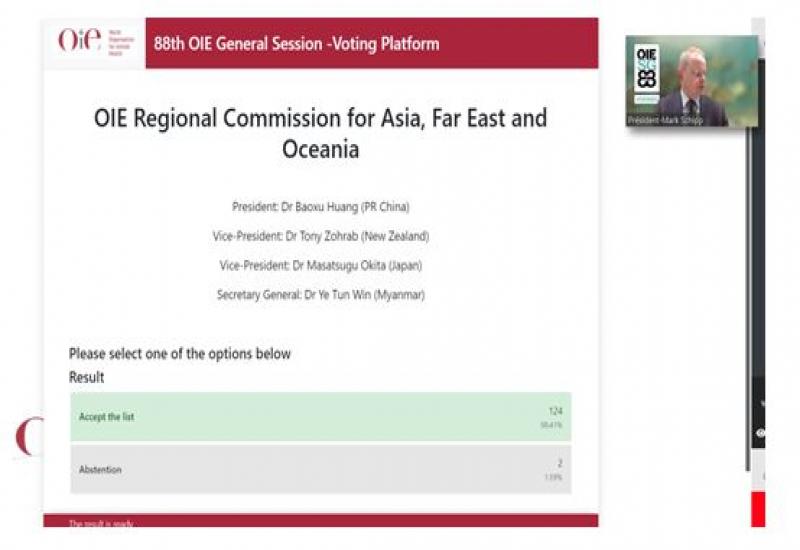 ပြင်သစ်နိုင်ငံ ပါရီမြို့အခြေစိုက် ကမ္ဘာ့တိရစ္ဆာန်ကျန်းမာရေးအဖွဲ့ (OIE) ၏ ၈၈ ကြိမ်မြောက် ကမ္ဘာလုံးဆိုင်ရာ အထွေထွေညီလာခံကို မေ ၂၄ ရက်မှ ၂၈ ရက်အထိ ဗီဒီယိုကွန်ဖရင့် ဖြင့် ကျင်းပသည်။