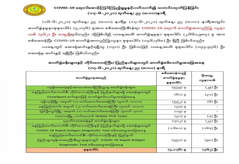 (၂၀၂၁ ခုနှစ်၊ ဇွန်လ (၁၇)ရက်နေ့ မွန်းလွဲ (၂:၀၀)နာရီအချိန် ထုတ်ပြန်ချက်)