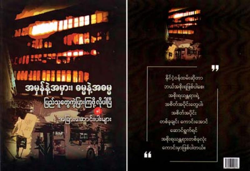 ပြန်ကြားရေးဝန်ကြီးဌာန၏စီစဉ်မှုဖြင့် အမှန်နှင့်အမှား၊ ဓမ္မနှင့် အဓမ္မ ပြည်သူတွေကွဲပြားကြဖို့ လိုပါပြီနှင့် အခြား ဆောင်းပါးများ ပါဝင်သည့် ဆောင်းပါးပေါင်းချုပ် စာအုပ်ထွက်ရှိလာသည်။ ။