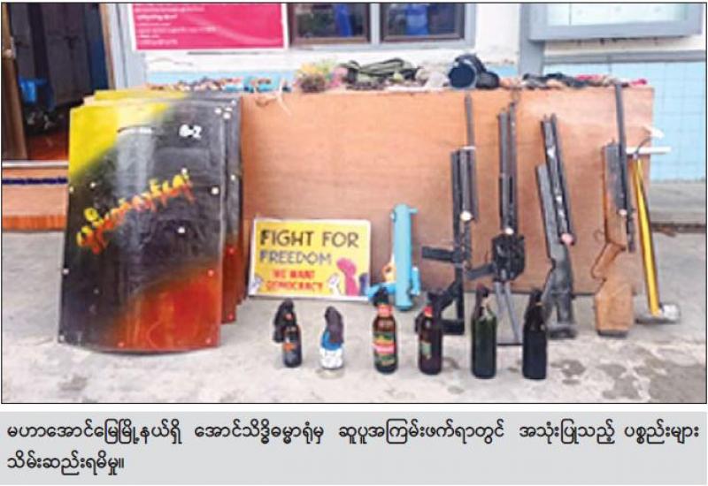 အကြမ်းဖက်ဆန္ဒပြရာတွင် ပါဝင်သောလူငယ်များအနေဖြင့် အဖျက်အမှောင့် ဆောင်ရွက် လိုသော လူတစ်စု၏သွေးဆောင်စည်းရုံးမှု၊ ချိတ်ဆက်ပေးမှုကြောင့် တိုင်းရင်းသား လက်နက်ကိုင်အဖွဲ့အစည်းတစ်ခု နယ်မြေအတွင်း၌ အကြမ်းဖက်ဖောက်ခွဲဖျက်ဆီးရေး သင်တန်းအား တက်ရောက်ပြီး ပြန်လည်ရောက်ရှိနေကြောင်း သတင်းပေးပို့ချက်များအရ လုံခြုံရေးတပ်ဖွဲ့ဝင်များက သက်ဆိုင်ရာနယ်မြေအလိုက် လုံခြုံရေးလုပ်ငန်းများအား အထူးကြပ်မတ်စစ်ဆေးဆောင်ရွက်ခဲ့သည်။