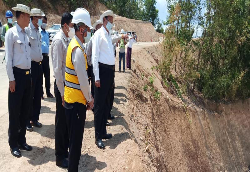 နေပြည်တော်၊ မေ ၁၁ ဆောက်လုပ်ရေးဝန်ကြီးဌာန ပြည်ထောင်စုဝန်ကြီး ဦးရွှေလေးသည် မေ ၉ ရက် ညနေပိုင်းတွင် သံတွဲ-ဂွ-ငါးသိုင်းချောင်း လမ်း (ဂွ-ငါးသိုင်းချောင်း အပိုင်း) တွင် ဧရာဝတီတိုင်းဒေသကြီး၊ လမ်းဦးစီးဌာန၊ လမ်းအထူးအဖွဲ့ (၂၀)မှ ရေနံ့သာလမ်းဆုံ 0 km မှ ရခိုင်ပြည်နယ်စပ် 35.29 km အထိ (၁၈) ပေ အကျယ်ကွန်ကရစ် လမ်းအဆင့်မြှင့်တင်ခြင်း လုပ်ငန်းများ ဆောင်ရွက်ပြီးစီးမှုအခြေအနေနှင့် အတက် အဆင်း မတ်စောက်သည့် လမ်းကွေ့နေရာတွင် သတ်မှတ်လမ်းအင်္ဂါရပ်များနှင့်အညီ လုပ်ငန်း ဆောင်ရွက်နေမှုတို့ကို ကြည့်ရှုစစ်ဆေးပြီး ကုန်ကားကြီးများနှင့် ခရီးသည် Express ကားကြီးများ အန္တရာယ်ကင်းရှင်းစွာ သွားလာနိုင်ရေးအတွက် လိုအပ်သည့်နေရာများတွင