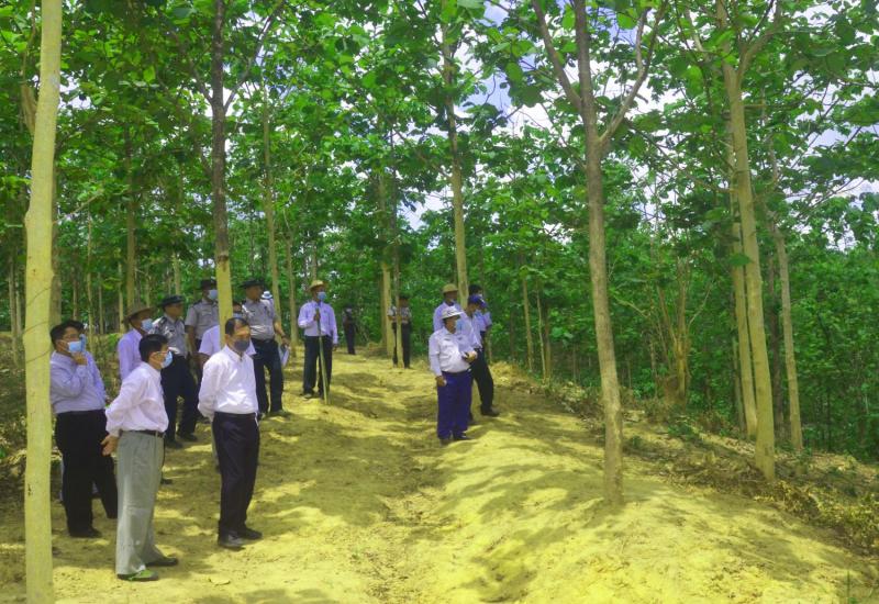 သယံဇာတနှင့် သဘာဝပတ်ဝန်းကျင်ထိန်းသိမ်းရေးဝန်ကြီးဌာန၊ ပြည်ထောင်စု ဝန်ကြီး ဦးခင်မောင်ရီသည် မေ ၁၁ ရက် နံနက်ပိုင်းတွင် ပဲခူးတိုင်းဒေသကြီး၊ ပဲခူးမြို့နယ်ရှိ သစ်တောဦးစီးဌာနက တည်ထောင်ထားသော ဝါးကတုတ်ပျိုးဥယျာဉ်သို့ ရောက်ရှိပြီး ၂၀၂၁ မိုးရာသီ လူထုလှုပ်ရှားမှုဖြင့် သစ်ပင်ဖြန့်ဝေစိုက်ပျိုးရန်အတွက် ပျိုးထောင်ထားရှိသည့် နှစ်ပေနှင့်အထက် ပျိုးပင် ၂၀၀၀၀ အပါအဝင် သစ်မျိုးစုံပျိုးပင် ၃၅၀၀၀ ပျိုးထောင်ထားရှိမှု ကို ကြည့်ရှုစစ်ဆေးရာ တာဝန်ရှိသူများက ရှင်းလင်းတင်ပြပြီး ပြည်ထောင်စု ဝန်ကြီးက လိုအပ်သည်များ မှာကြားသည်။