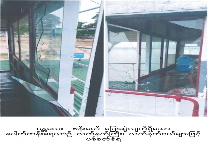 မန္တလေး(ဂေါဝိန်ဆိပ်ကမ်း)မှ (၃.၅.၂၀၂၁)ရက်နေ့ (၀၆:၀၀)နာရီအချိန်တွင် ခရီးသည်(၁၁) ဦး၊ ကုန်စည်(၂၁၅)တန်တင်ဆောင်ပြီး ထွက်ခွာလာသော“ပေါက်တန်း”ရေယာဉ်သည် (၆.၅.၂၀၂၁) ရက်နေ့(၁၀:၂၀)နာရီတွင် ကသာသို့ ဝင်ရောက်ခဲ့ပြီး (၁၁:၀၀) နာရီအချိန်တွင် ခရီးသည် (၁၀)ဦး၊ ကုန်စည် (၁၉၉)တန်ဖြင့် ပြန်လည်ထွက်ခွာလာခဲ့ရာ (၂၀:၂၅) နာရီအချိန်ခန့်တွင် သာယာကုန်းနှင့် ကျောက်ကြီးရွာကြားအရောက် မြစ်၏လက်ဝဲဘက်ကမ်းမှ မောင်းနှင်နေစဉ် သောင်းကျန်းသူအဖွဲ့များ၏ လက်နက်ကြီး/ လက်နက်ငယ်များဖြင့် (၁၅)မိနစ်ကြာ ပစ်ခတ်ခံရမှု ကြောင့် တာဝန်ကျတက်မကိုင် ဦးဇော်မင်းဦးတွင် လက်နက်ကြီးအစ ထိမှန်ဒဏ်ရာ (မစိုးရိမ်ရ)နှင့် စက်ခန်းအုပ်(၄)ဖြစ်သူ ဦးအောင်ဇော်ငြိမ်းတွင် ပွန်းပဲ့ဒဏ်ရာများ အသီးသီးရရှိခဲ့ပါသည်။ ရေယာဉ်ကို လုံခြုံရေးရရှိနိုင်မည့် ရွှေကူသို့မောင်းနှင်ခဲ့ရာ (၂၃:၁၅)နာရီ တွင်ရောက်ရှိပြီး ဒဏ်ရာရဝန်ထမ်းများကို ဆေးကုသမှုပြုလုပ် ပေးခဲ့ကြောင်းနှင့် ခရီးသည်များ ထိခိုက်ဒဏ်ရာရရှိမှုမရှိကြောင်း သိရှိရပါသည်။
