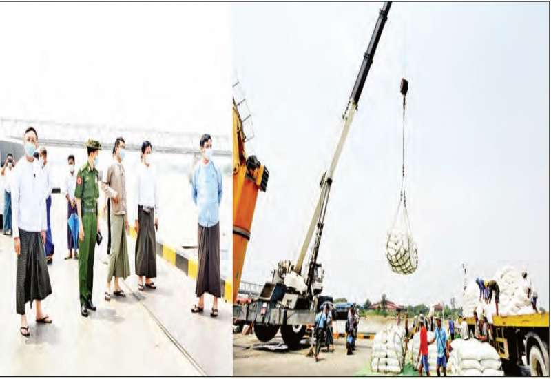 ကုန်သွယ်မှုနှင့် ကုန်စည်စီးဆင်းမှုများ မှန်ကန်မြန်ဆန်စေရေးလုပ်ငန်း ကော်မတီဥက္ကဋ္ဌ၊ စီးပွားရေးနှင့် ကူးသန်းရောင်းဝယ်ရေးဝန်ကြီးဌာန ဒုတိယဝန်ကြီး ဦးညွန့်အောင်သည် ရန်ကုန်တိုင်းဒေသကြီး စီမံအုပ်ချုပ်ရေးကောင်စီဝင် ဗိုလ်မှူးကြီးဝင်းတင့်၊ စီးပွားရေးနှင့် ကူးသန်းရောင်းဝယ် ရေးဝန်ကြီးဌာန အမြဲတမ်းအတွင်းဝန်၊ လုပ်ငန်းကော်မတီအတွင်းရေးမှူး၊ အကောက်ခွန်ဦးစီးဌာန၊ မြန်မာ့ဆိပ်ကမ်း အာဏာပိုင်၊ တာဝန်ရှိသူများနှင့်အတူ ယနေ့နံနက်ပိုင်းတွင် ရွှေပြည်သာစက်မှုဇုန် (၃)ရှိ ရွှေမ် ဆိပ်ကမ်းတံတားသို့ သွားရောက်ကြည့်ရှုစစ်ဆေးရာ ဆိပ်ကမ်း တာဝန်ကျများက သက်ဆိုင်ရာ ဆိပ်ကမ်းအစည်းအဝေးခန်းမ၌ ဆိပ်ကမ်းပိုင်းဆိုင်ရာ အချက်အလက်များ၊ ဆန်တင်ပို့မှုအခြေအနေ များကို ရှင်းလင်းတင်ပြသည်။