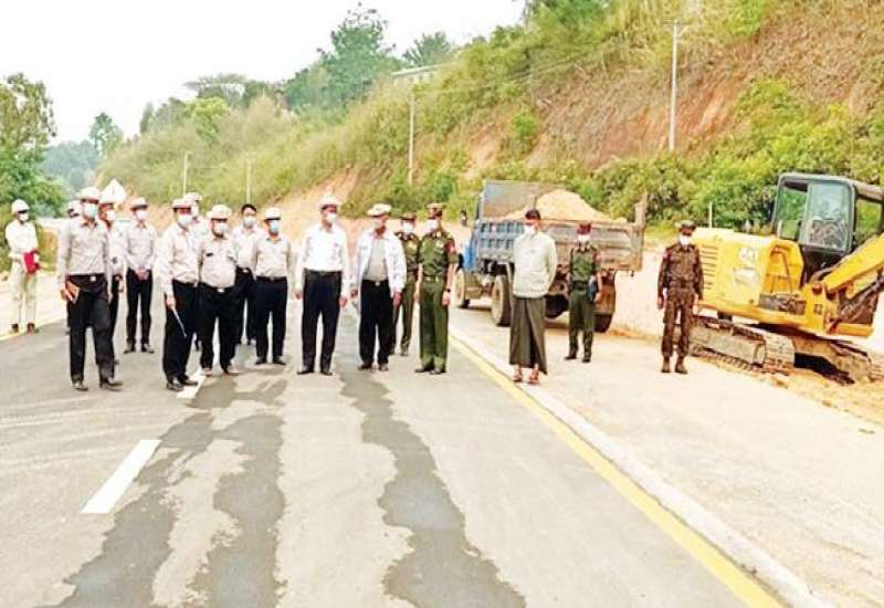 ဆောက်လုပ်ရေးဝန်ကြီးဌာန ပြည်ထောင်စုဝန်ကြီး ဦးရွှေလေးသည် တြိဂံဒေသတိုင်းစစ်ဌာနချုပ် တိုင်းမှူး ဗိုလ်မှူးချုပ် မျိုးမင်းထွန်းနှင့်အတူ ဧပြီ ၂၃ ရက် မွန်းလွဲပိုင်းတွင် ရှမ်းပြည်နယ် (အရှေ့ပိုင်း) ကျိုင်းတုံခရိုင် တွင် ကျေးလက်လမ်းဖွံ့ဖြိုးရေးဦးစီးဌာနမှ မဟာဗျူဟာမြောက်စီမံကိန်းဖြင့် ဆောင်ရွက်သည့် နောင်ငင်းဝမ်ဆိုင်း (လွယ်) လမ်း ကွန်ကရစ်ခင်းခြင်းလုပ်ငန်းများ ဆောင်ရွက်ထားရှိမှုကို လမ်းတစ်လျှောက် ကြည့်ရှု စစ်ဆေးသည်။