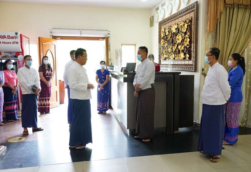 ဟိုတယ်နှင့် ခရီးသွားလာရေးဝန်ကြီးဌာန ပြည်ထောင်စုဝန်ကြီး ဦးမောင်မောင်အုန်း သည် ယနေ့နံနက်ပိုင်းတွင် နေပြည်တော်ကောင်စီနယ်မြေအတွင်းရှိ ခရီးသွား ဆွဲဆောင်မှုရှိသော နေရာများနှင့် ဟိုတယ်များ ကိုဗစ်-၁၉ စည်းမျဉ်းစည်းကမ်းနှင့်အညီ ဖွင့်လှစ်ထားရှိမှု အခြေအနေများကို သွားရောက်ကြည့်ရှုစစ်ဆေးသည်။