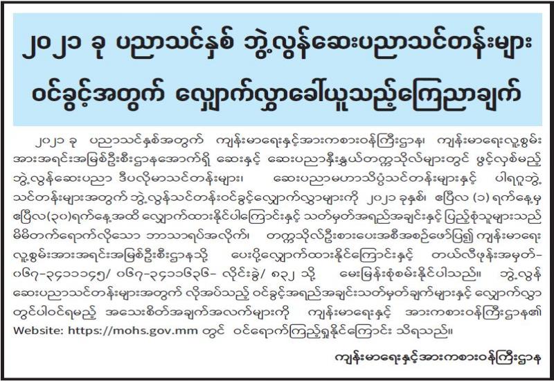 (၂၀-၄-၂၀၂၁) ရက်နေ့၊ ည (၈:၀၀) နာရီမှ (၂၁-၄-၂၀၂၁) ရက်နေ့၊ ည (၈:၀၀) နာရီအတွင်း ဓာတ်ခွဲနမူနာစုစုပေါင်း (၁,၁၀၃) ခုအား စစ်ဆေးပြီးစီးခဲ့ရာ COVID-19 ရောဂါ ဓာတ်ခွဲအတည်ပြု လူနာသစ် (၁၃) ဦး တွေ့ရှိရပါသည်။ သို့ဖြစ်ပါ၍ ယနေ့အထိ ဓာတ်ခွဲနမူနာ စုစုပေါင်း (၂,၅၆၁,၉၁၀) ခု အား စစ်ဆေးခဲ့ပြီး COVID-19 ဓာတ်ခွဲအတည်ပြုလူနာ စုစုပေါင်း (၁၄၂,၆၇၄) ဦး ရှိပြီ ဖြစ်ပါသည်။