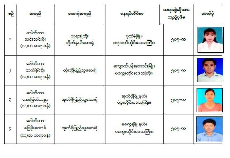 နိုင်ငံတော်၏ အုပ်ချုပ်မှုယန္တရားပျက်ပြားစေရန် ရည်ရွယ်ချက်ဖြင့် နိုင်ငံ့ ဝန်ထမ်းနှင့် ကျန်းမာရေး ဝန်ထမ်းများအား CDM လှုပ်ရှားမှုများတွင် ပါဝင်လာစေရန် လှုံ့ဆော်ခြင်း၊ ၎င်းတို့ကိုယ်တိုင် CDM လှုပ်ရှားမှုများတွင် ပါဝင်လုပ်ဆောင်ခြင်း၊ CDM လှုပ်ရှားမှုအပေါ် ထောက်ခံအားပေးခြင်း၊ CRPH မတရားအသင်းအား ထောက်ခံ အားပေးခြင်းတို့ကို ဆောင်ရွက်လျက်ရှိသည့် အောက်ဖော်ပြပါ ဆရာဝန် များအား ရာဇသတ်ကြီးပုဒ်မ ၅၀၅-က ဖြင့် အမှုဖွင့်အရေးယူဆောင်ရွက်ထားပြီး ဖြစ်ပါသည်။